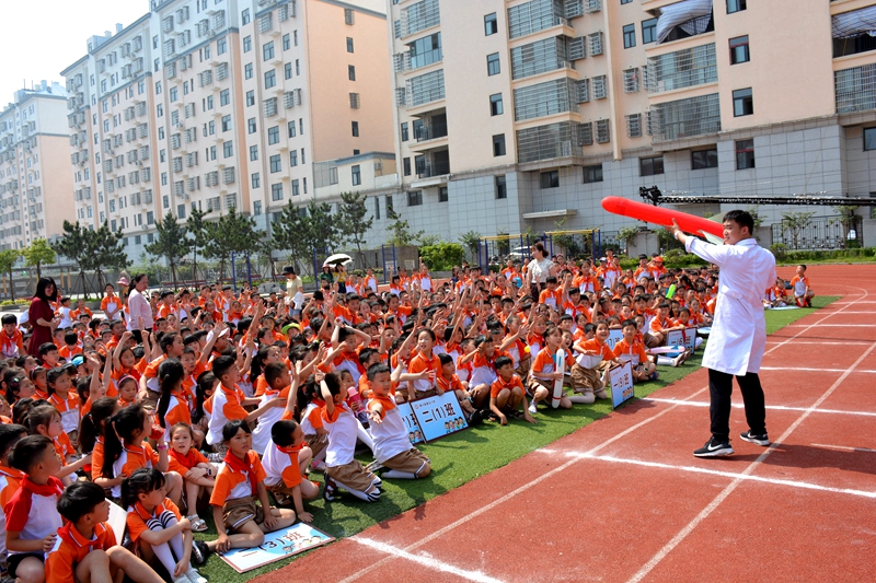 6月6日上午,在潢川五小隆重举行“科普万里行”展演活动启动仪式,此次活动是由河南省科技馆与北京“索尼探梦科技馆”联手主办,信阳市科协与潢川县人民政府负责承办,潢川县科协和县教体局协办的大型科普展演活动。北京索尼探梦科技馆馆长张维、河南省科技馆展览教育部主任薛艳芳、信阳市科协副主席张俊、潢川县人民政府副县级干部李运宝、县科协党组书记、主席涂艾黎、团县委书记卢静静出席活动,潢川五小校长霍同友及全体师生参加了此次活动。