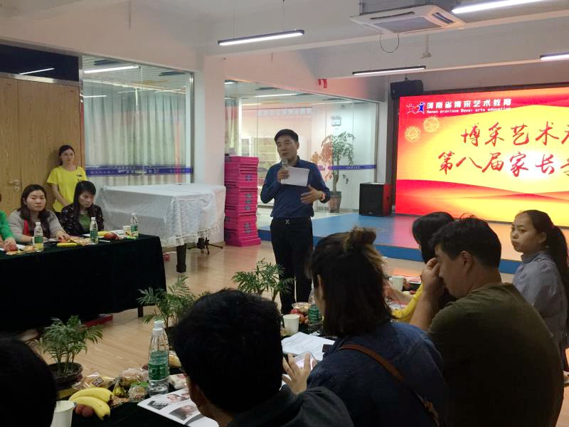 会议在少儿舞蹈《大小姐》、教师三人舞《大鱼海棠》、古筝独奏《渔舟唱晚》中拉开序幕,本次会议特邀博采艺术文化传播有限公司马金总经理参加会议并做了重要讲话,还邀请了历届几任家委会会长参加会议,应邀参加本次会议的33位家长委员全部按时到会。本次会议由博采艺术教育行政管理人员王莉主持,首先由主持人王莉宣读了“博采艺术教育家长委员会职责”,让委员们明确本次工作会议的目的、任务,家长委员的权利和义务等;然后有前几任老会长王秀芳、袁波、胡焕华等分别讲话,她们表示:一定要支持博采的各项工作,积极为博采的发展献计献策,并决心团结所有家长,充分发挥家长委员会的作用,协助博采做好各项工作。然后有博采艺术教育潢川校区执行校长周少伟把博采近期的主要工作及规划向家长委员进行了汇报,接下来有5位家长代表分别发言讲话,最后有河南省博采艺术教育联盟董事长、博采艺术教育潢川校区总经理徐祖斌总结发言,徐总就博采的价值、发展、孩子的培养等方面谈了自己的一点体会;同时也给委员们提出了要求和希望,希望委员们要一如既往的支持博采工作,做好家、校沟通的桥梁和纽带作用,充分发挥家委会智囊团的作用,为博采的教学工作贡献自己的力量。