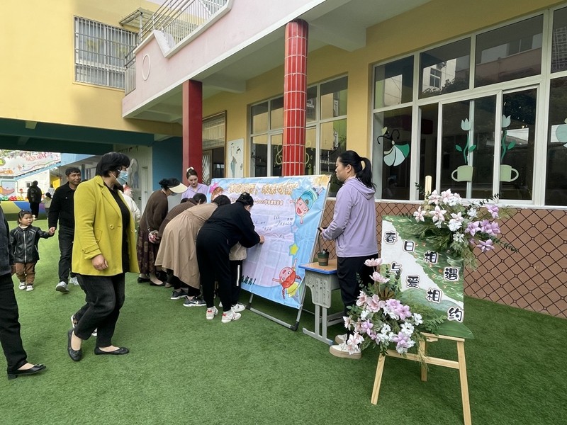 家长和孩子们进行了签到仪式,园长致欢迎辞。