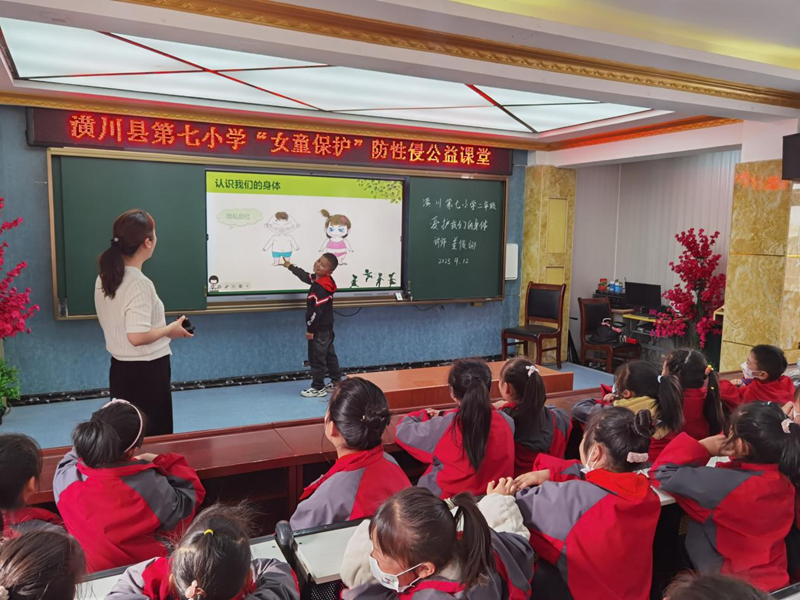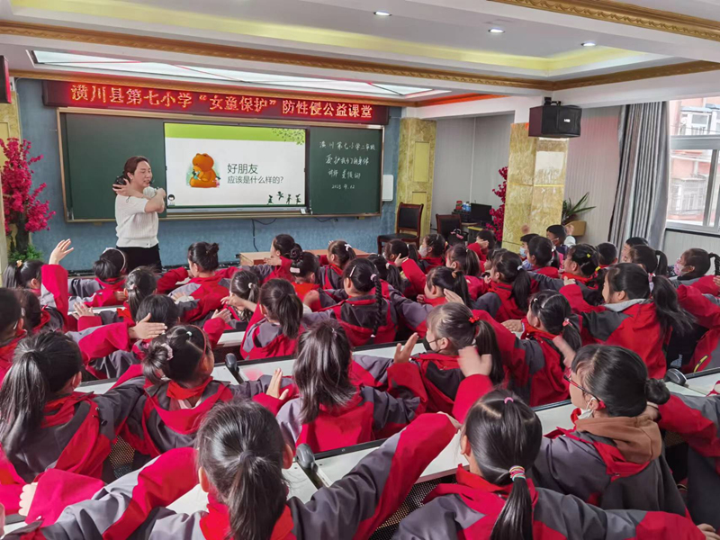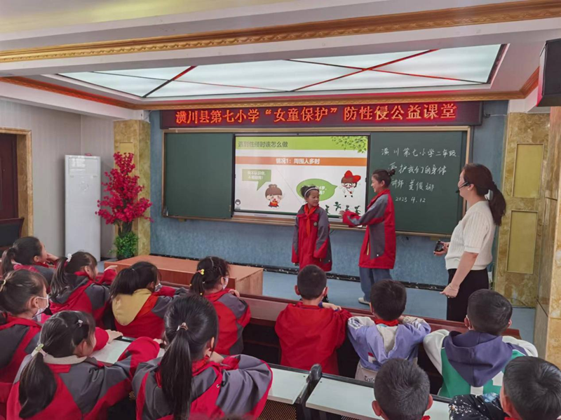 爱我潢川讯(季青青)为提高儿童防范意识,保护儿童远离性侵害,促进儿童健康快乐地成长。2023年4月12日,县法学会社会心理服务研究会、女童保护基金信阳申城社工团队讲师姜俊娜走进潢川七小,分别为二、三、四年级的学生上了一堂别开生面的"女童保护"防性侵公益课程。