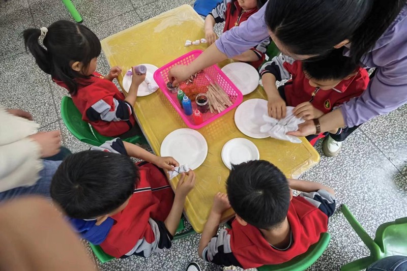 爱我潢川讯(梁蕊蕊)扎染,是民间传统而独特的印染工艺,为让孩子们感受我国民间艺术的风采,感受扎染的图案美、色彩美和形式美,潢川七小幼儿园开展扎染特色课活动。