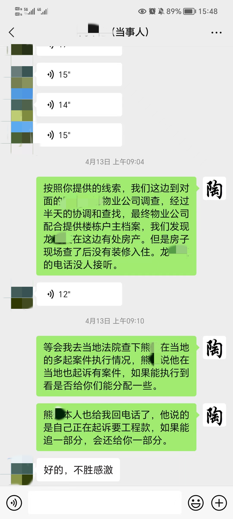 在时隔一年后,闻某向陶炳礼提供其发现熊某在山西晋城的财产线索,随即陶炳礼带领团队奔赴异地执行。