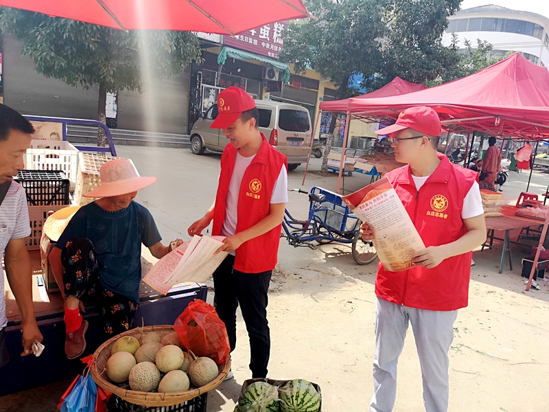 潢川网6月15日讯(叶先蔚)2018年6月15日上午,潢川县白店乡在首集开展了平安建设宣传活动。由乡信访办、综治办、组织室工作人员组成的乡机关志愿服务队,在乡副主任科员杨昆带领下于早集人流密集期间,沿街道向赶集群众发放“全民参与、共创平安——致全县人民的一封信”上百份,并向过往群众宣传讲解12340“两率”调查电话等平安创建知识。近来白店乡利用村“两委”换届、志愿服务活动等各种形式大力开展平安创建,宣传党委政府在平安创建工作上的努力和成效,确保平安创建不留死角,有效提升了全乡群众的平安创建意识。