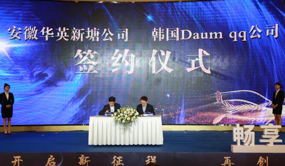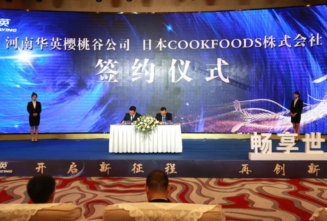 最后举行了签约仪式,华英农业先后与潢川县人民政府、中检河南公司、南京桂花鸭集团、华英樱桃谷公司与日本 COOKFOODS株式会社、韩国SAMAH A.S.I公司、安徽华英新塘与韩国Daum qq公司、丰城华英公司与久久丫公司、华英公司与沣盛集团公司签订了合作协议。