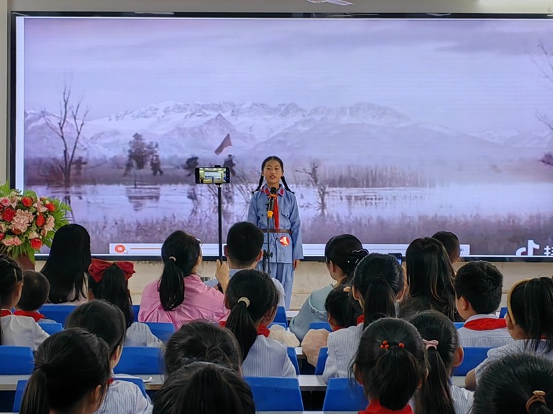 最后,学校副校长任贵宝勉励少先队员要从红色故事中汲取精神力量,牢记革命英雄榜样,珍惜今天来之不易的幸福生活,努力学习,勇于担当。坚定童心向党,永远跟党走的信念。