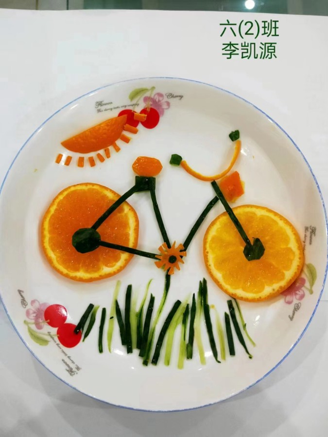 同学们巧妙构思,动手实践,巧妙运用各种水果特有的色彩和形状,摆造型、配色彩、放点缀,变幻出布局合理、造型各异的水果拼盘:美丽的郁金香、可爱的小螃蟹、翩翩起舞的蝴蝶、昂首挺胸的天鹅、火红的灯笼、小巧的自行车……一件件色泽鲜亮、妙趣横生的水果拼盘作品,既展现了孩子们丰富的想象力,又让孩子们体验了劳动的快乐,收获了成功的幸福。