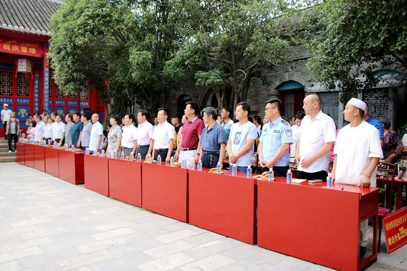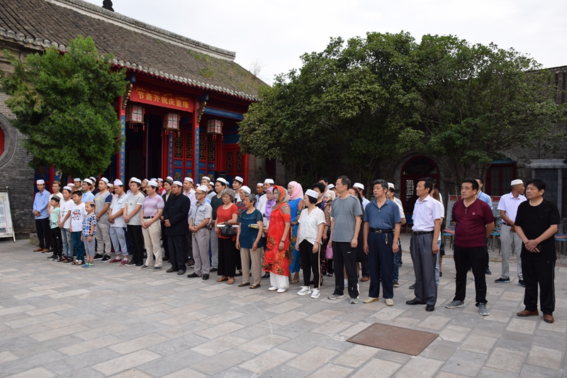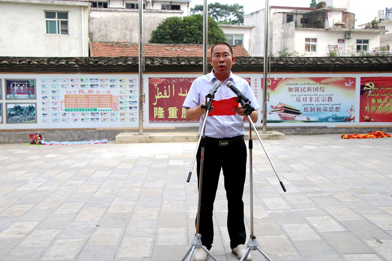 庆祝活动开始之前,举行了庄严隆重的升国旗仪式,县民宗委主任黄保林参加并发表讲话。现场齐声高唱国歌,声势浩大,场面壮观,充分展现了全国各族人民的爱国情怀。接着潢川县民族团结进步促进会常务副会长兼秘书长、潢川县伊斯兰教协会会长苏建全致欢迎词。他在致辞中回顾了我国改革开放40周年以来,在中国共产党的坚强领导下,全体回族同胞团结奋进所取得的辉煌的成绩。老城办事处主任武德锋发表贺词。他说,开斋节对于回族人民就如同春节之于汉族人民一样,是热烈的、盛大的,是充满欢乐喜庆气氛的。今天我们欢聚一堂,共同庆祝开斋节,更是体现了全国各族人民的团结一心。最后,县委常委、统战部部长郭振萍发表重要讲话。郭部长在讲话中指出,中国的传统文化源远流长,博大精深。今天,既是回族群众的隆重节日,也是展现民族团结、交流民族文化的盛会,我们要心相偕,手相牵,为实现中华民族的伟大复兴团结一心,努力前行。