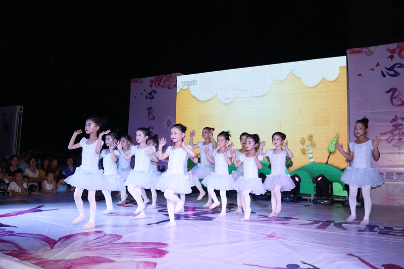 汇演中,孩子们用优美的舞姿演绎了一场精彩的文艺表演,表达了他们活泼可爱、热爱生活的思想感情。演出在振华班表演的《宝贝阵线联盟》和心飞舞艺术培训中心校长李文娟致辞后拉开帷幕;三班的小精灵们登场在舞蹈《俏花旦》中巧妙的将戏曲中花旦的手、眼、身法、步等动作与舞蹈语汇结合在一起,扮演出了活泼、可爱的小花旦;四级班《铿锵女兵》给我们引入领袖毛主席的一首诗,“飒爽英姿五尺枪,曙光初照演兵场。中华儿女多奇志,不爱红装爱武装”的意境之中。五级班《基本功展示》更是让现场的观众感受到心飞舞的孩子们能够有今天舞台上精彩的展现离不开背后的平日扎实的基本功训练;中国舞1班的《茉莉花》、《幸福家家有》和中级班《少林英雄》展示了该中心在传统舞教学成果,二级班宝贝们带来的舞蹈《彩云之蓝》让大家一同去体会云的那边别样的芬芳;爵士班《爵士串烧》和中国舞4班《印度舞串烧》闪耀的服装、悠扬迂回的音乐,营造出一种浓郁的异域情调。