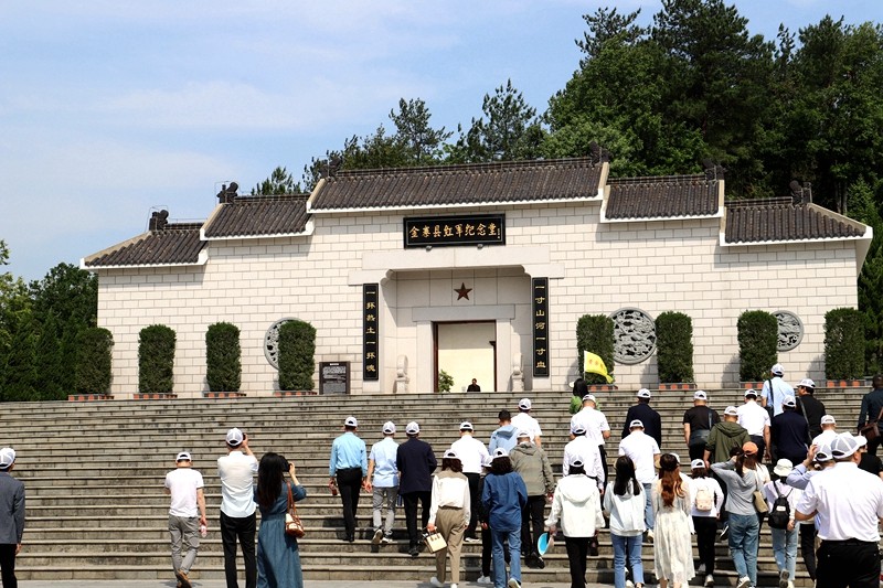 上午9时,大家首先来到金寨县红军广场,步行至革命烈士纪念塔正前方肃立,庄重敬献了花篮,整理了缎带,全体成员默哀并深深三鞠躬,表达对革命烈士的深切缅怀和无限敬仰。
