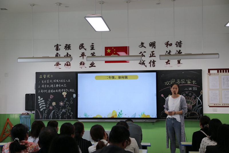 本次家长会学校领导高度重视,多次商讨、积极筹备、细致安排,通过学校微信公众号下发家长邀请函,各班老师精心准备,使广大家长一走进潢川三小新校区就能感受到一种融洽、和谐的氛围。家长会采取主会场和分会场同步钉钉直播的形式,主会场设在报告厅,分会场设在48个教学班。全体教职工及新校区3000余名学生家长共赴这场事关孩子幸福成长的聚会。主会场会议由教务处冯晓婷主任主持。