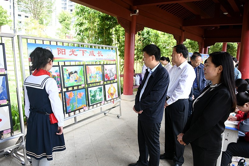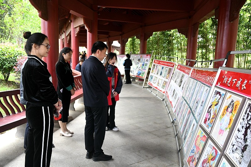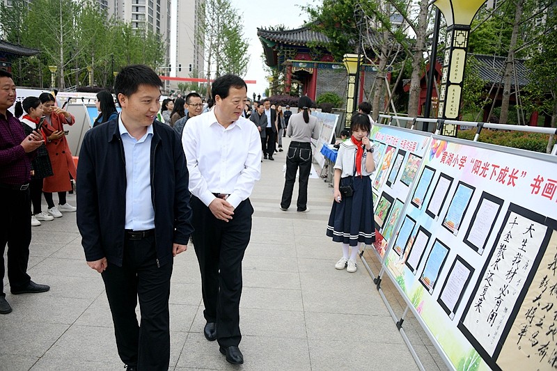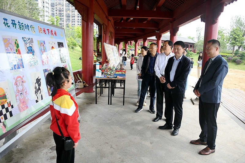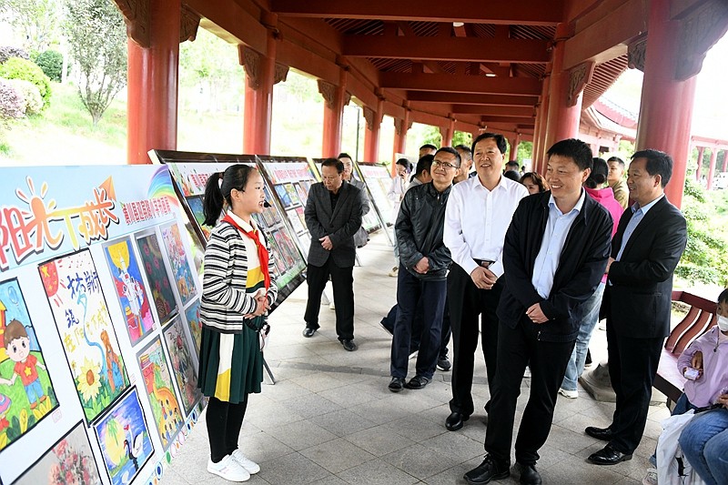 本网讯 为贯彻落实党的二十大精神,充分展示“双减”背景下素质教育成果,让更多青少年通过艺术作品感受到家乡新变化,培养他们热爱家乡,厚植“振潢有我,兴潢在我”思想根基,5月22日上午,由县委宣传部、教体局、团县委、关工委、新华书店主办的潢川县2023年青少年艺术节——书法美术作品展在流光园艺术长廊隆重开展,为期两天。