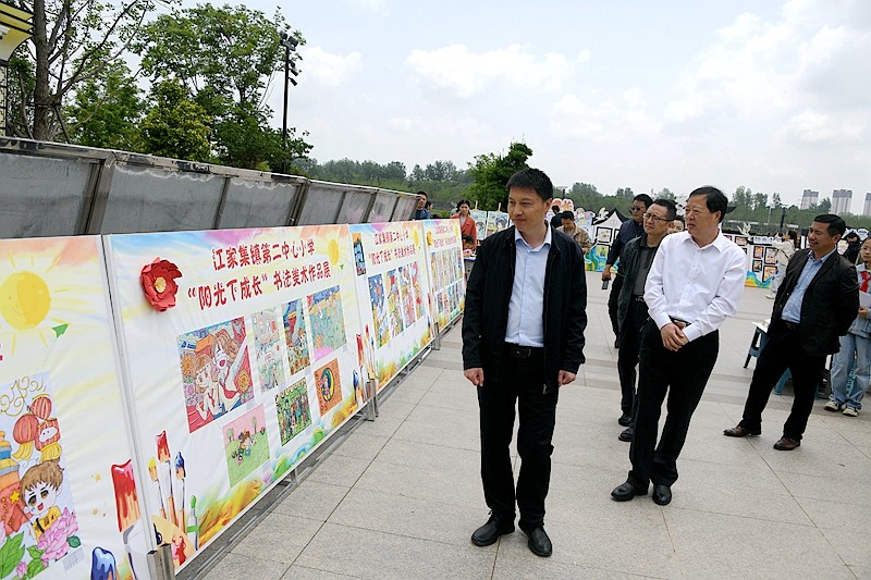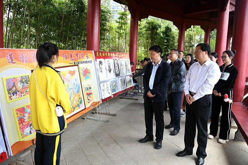 县委常委、宣传部部长、政府副县长张胜利,县人大副主任陈功江,县政协副主席杨怀玉,县委宣传部副部长蒋丽,县人大教科文卫委主任董安友,县关工委执行主任戴大觉、副秘书长刘忠全,团县委书记胡冉冉,县文联主席李学海,县教体局党组书记、局长胡波,党组成员、副局长侯黎明,县新华书店经理刘永峰等领导嘉宾,以及来自社会各界的参观者,共同欣赏这场视觉盛宴。参观者不仅对展览的规模和质量感到满意,更重要的是,他们从这些作品中深刻感受到了潢川的新气象,了解到了学校的特色育人工作和教育教学改革成果,感受到了青少年对家乡的热爱。
