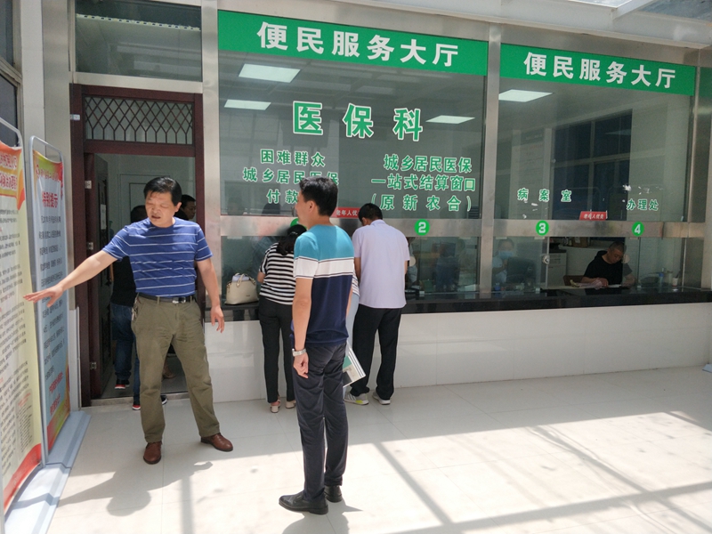 潢川网6月21日讯 6月21日上午,固始县人社局和民政部门组织四家公立医院医疗机构负责人和医保科负责人,来到潢川县第二人民医院参观学习贫困户报销流程的五道防线一站式结算运行模式