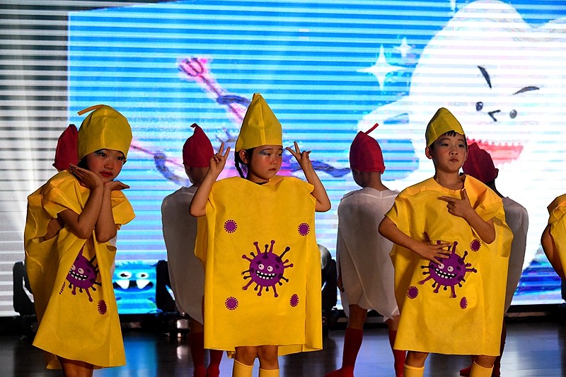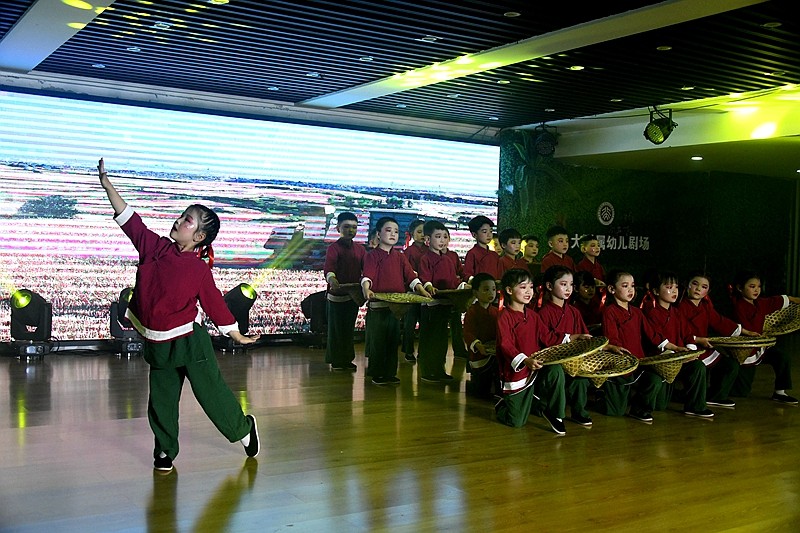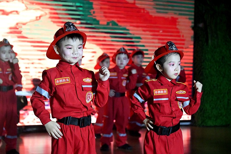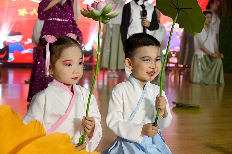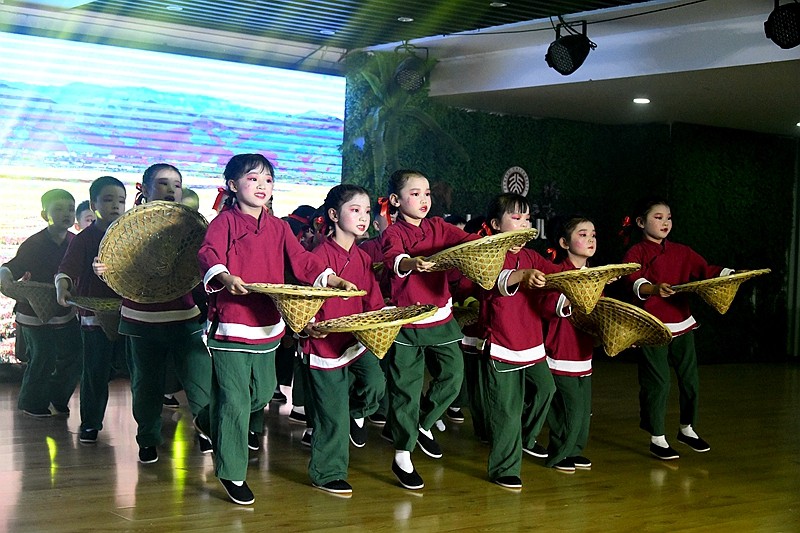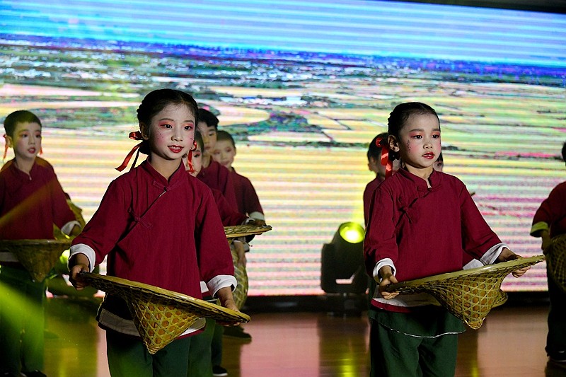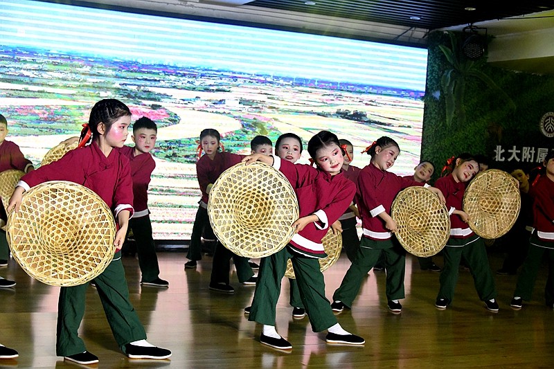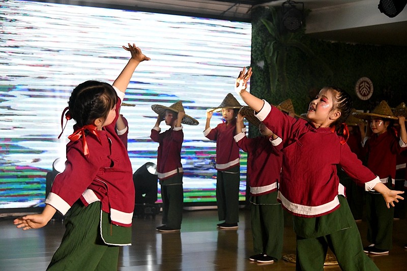 沉浸式毕业诗朗诵《小别离》,通过一日流程的微课堂展示,让静待花开衔接有度的素质教育成果绽放;情景体验剧《消防神兵》、绘本表演《细菌大战》在角色扮演中让师生感受平安健康的重要性;农耕操《谷满仓》跳出对节约美德、热爱劳动的生活热情、音乐剧《中华好儿郎》《向风行》,慷慨激昂的爱国情将晚会推向高潮。