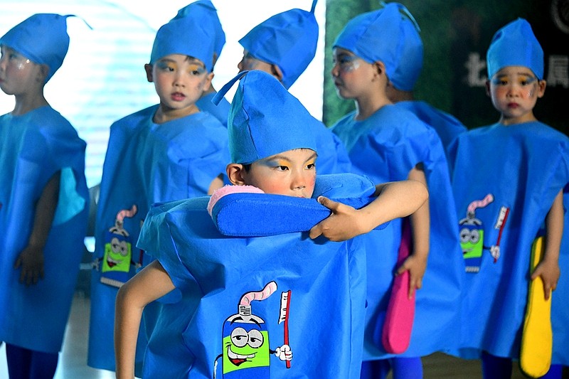园艺生态秀《花儿,你好!》,孩子们拿起护绿工具,用实际行动爱护花鸟鱼虫,稚嫩地童声呼喊“金山银山不如绿水青山”引起台下观众的共情共鸣,一致拍手叫好。