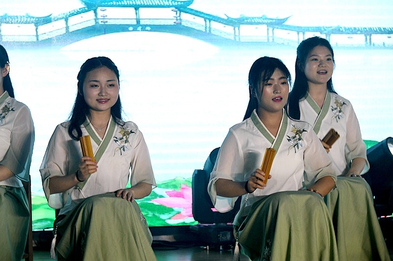 传承非遗文化,展现教师风采。音舞诗画《江南》、古琴曲《山水情》让人心旷神怡、暖场活动扫码观看培语社《新时代》的脱口秀节目让人耳目一新,展现了新青年、新思想、新时代下的新视角。