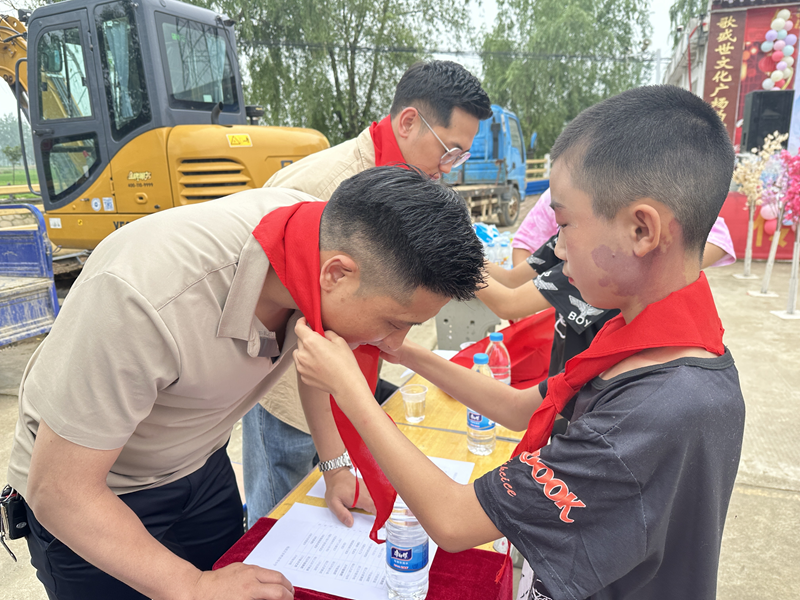 为表达对出席领导的欢迎和热情,优秀少先队员代表学校敬献属于他们的光荣——红领巾。随后,中心校副校长李成斌致辞,向全体学生送上了节日的祝福,同时寄语同学们要养成良好的行为习惯,成为德智体美劳全面发展的好学生。希望同学们在接下来的演出中能展现出新时代儿童的良好风貌和精神力量,并预祝本次汇演取得圆满成功。