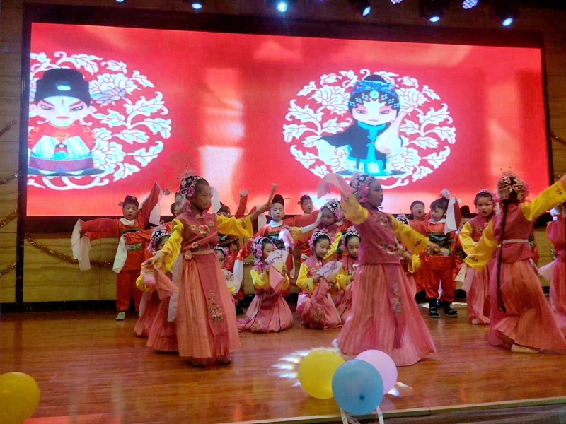毕业礼活动在精心制作的视频短片《我们毕业了》中拉开帷幕。家长朋友们动情的看着一幕幕画面,既是孩子们三年在园生活与游戏的快乐缩影,也是孩子们三年不断进步与成长的足迹,更是老师们一千多个日日夜夜付出青春与汗水的累累硕果。随后,孩子们进行了情景剧《团结就是力量》、《手机手机》,舞蹈《花儿向阳开》、《印度姑娘》,健身劲舞《超级冠军》,戏曲表演《梨园娃娃》、诗歌朗诵《师生情》、大合唱《我们是鲜花》《爱我中华》等节目的表演,孩子们一个个自信的引吭高歌、翩翩起舞,童心绽放、歌颂党恩,都尽情地在这毕业的最后时刻,展示着各自的艺术才华与激情,一颗颗童心感动了在场的每一位观众。活动在孩子们稚嫩深情演唱的充满对党和祖国歌唱和热爱之情的歌曲《爱我中华》的中圆满的落下帷幕。