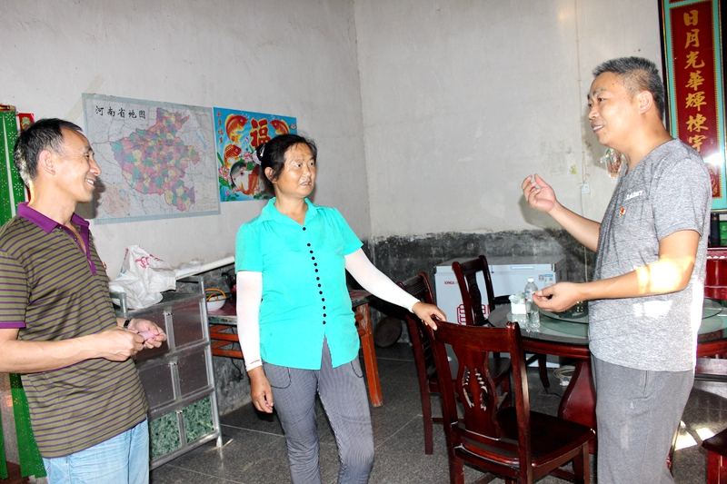 学校党委委员、副校长康文艺,党员委员、纪检书记王坤,党委委员、教务科科长闰道德带领着十多名党员干部,冒着炎炎烈日来到潢川县仁和镇瓦房村,分组前往贫困户家中走访慰问。