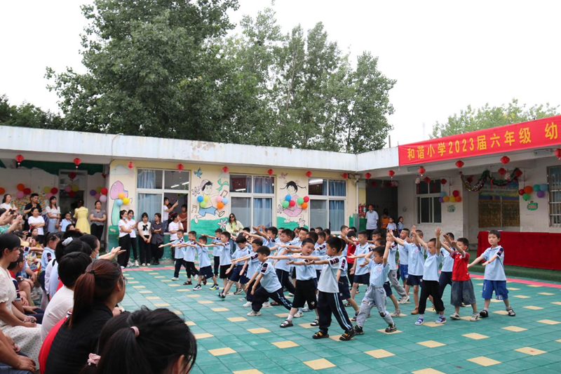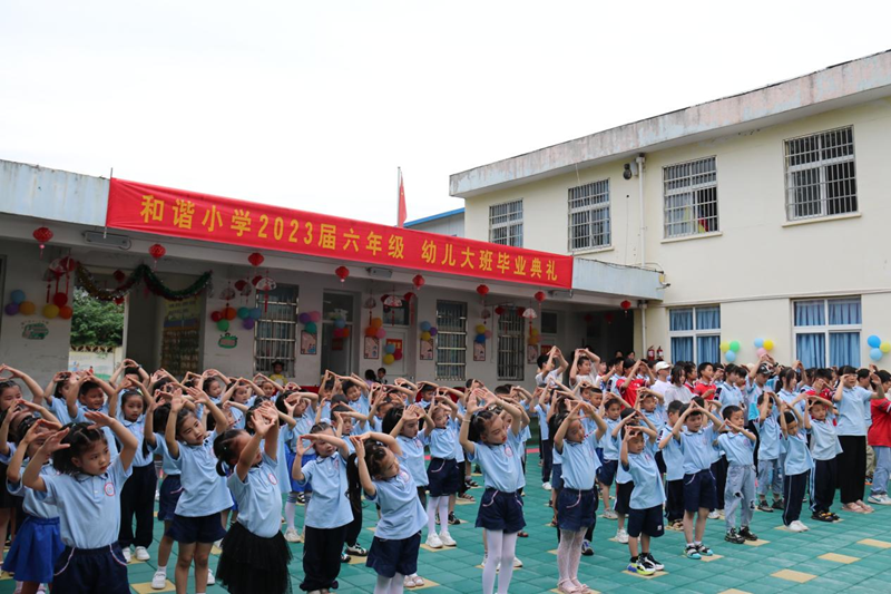 本网讯(晏莹磊)又是一年毕业季,又是一年丰收时。时光流逝,岁月带不走执着的梦想;各奔东西,距离切不断永恒的友情。2023年6月16日下午,潢川县弋阳和谐小学2023届六年级、幼儿大班毕业典礼在幼儿园操场内隆重举行,校长徐祥忠、副校长凡春兴,总务主任袁启玲、教务处刘建红主任、少队辅导员晏莹磊,以及六年级、幼儿大班全体师生和家长们参加。