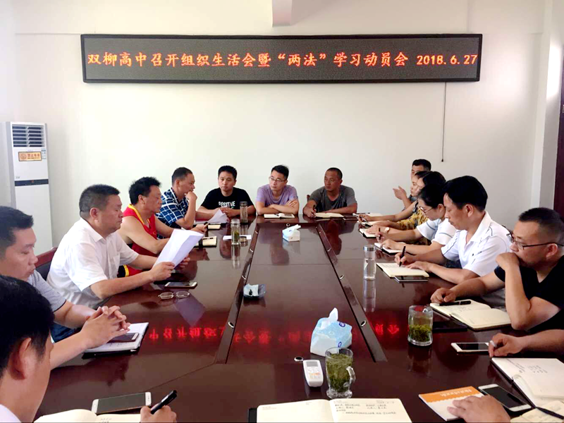 潢川网6月27日讯(杨永福)2018年6月27日下午,潢川县双柳高中全体党员和班子成员在学校敬德楼会议室召开组织生活会暨“两法”学习动员会。会议由双柳高中党支部书记彭长国同志主持。