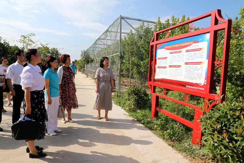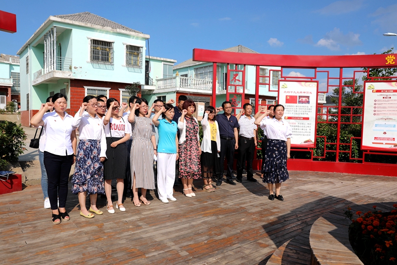 首先,在连岗村党内政治文化宣教园,团县委书记卢静静带领参加活动的全体党员,面对党旗庄重举起右手,重温入党誓词,让党员干部们重温入党宣誓时的庄严承诺和坚定决心,在党旗下接受心灵的净化和洗礼。宣誓完毕后,所有党员干部在党的十九大精神宣传园地驻足观看展板内容,学习十九大会议精神、习近平总书记关于党内政治文化建设的重要论述及潢川县革命史等,从中汲取力量,不忘初心,牢记使命。