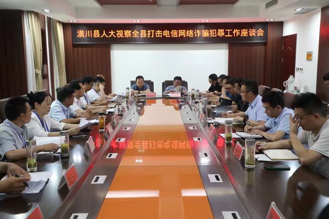 本网讯 6月26日下午,潢川县人大副主任、县总工会主席齐新峰带领部分县人大常委会委员、市县人大代表和法工委委员在县政府副县长、公安局长陈勇的陪同下,对全县打击电信网络诈骗犯罪工作进行视察。
