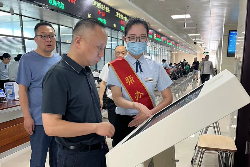 按照办事流程,李海鹏在取号机取号后,等待窗口服务人员叫号,同时仔细测算群众办事等待时间。在服务窗口向工作人员详细询问了企业参保登记手续办理流程、办理时限以及便民服务开展情况,现场征求了办事群众对医保工作的意见建议。就经办服务中发现的个别问题向窗口负责同志进行了反馈。