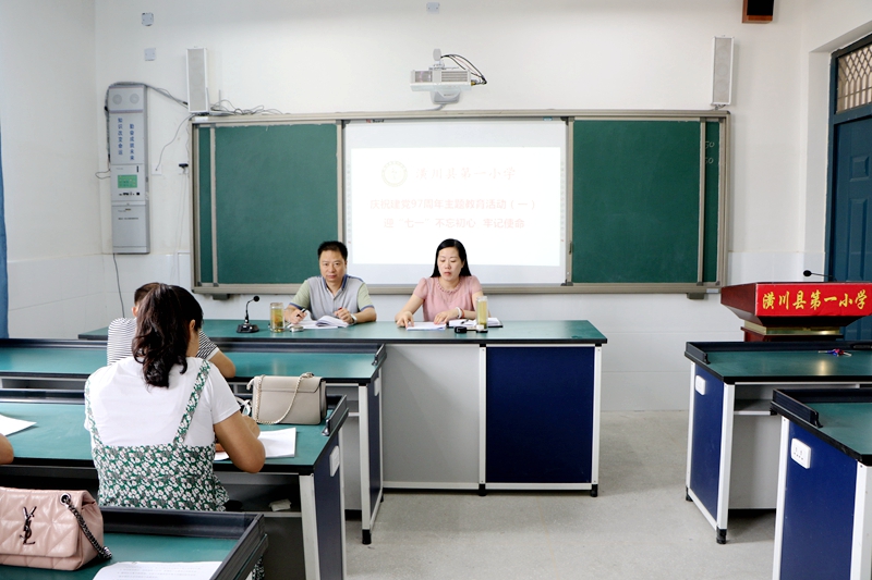 潢川网7月2日讯(刘静 张蓬)7月1日上午,潢川县第一小学党支部在学校会议室开展庆祝建党97周年教育活动。此次活动以“不忘初心、牢记使命”为主题,活动由副校长赵素霞主持。