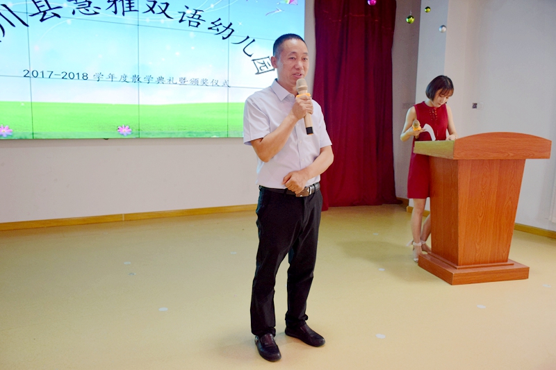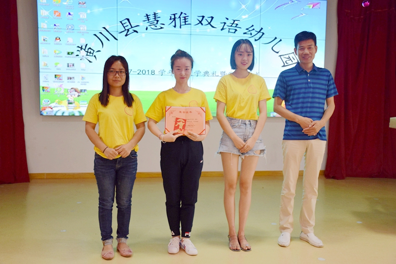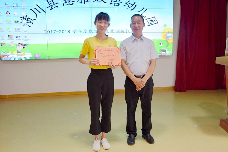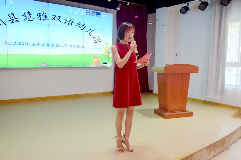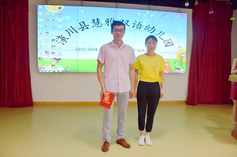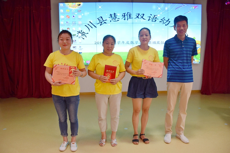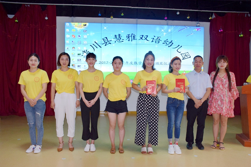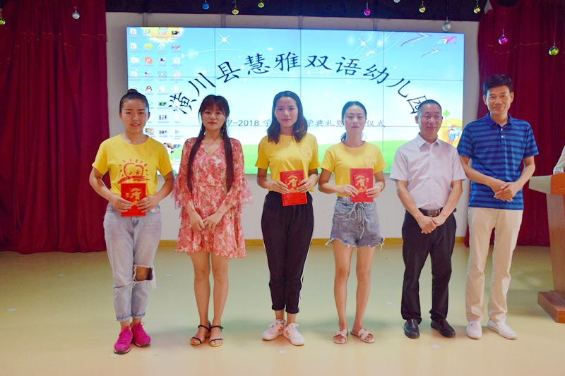典礼在潘园长的致辞中拉开序幕,并通过PPT带领大家共同回顾了建园以来的种种历程。园长芦欢欢对本学年度的工作进行了总结。表彰会上,潘园长宣读了本学期“优秀班主任”、“优秀教师”、“优秀保育员”、“优秀青年教师”、“优秀班级”、“最佳安全”等获奖教师名单。董事长张万乐、园长芦欢欢等园领导为获奖教师颁发了荣誉证书。受表彰教师发表了获奖感言。典礼在董事长张万乐发表的感言中完美落下帷幕。最后祝愿全体教职工度过一个愉快、祥和的暑期。希望大家在新学期继续发扬热情与干劲,争取以更出色的表现去迎接下学期的各项工作,使潢川县慧雅双语幼儿园再上一个新台阶。