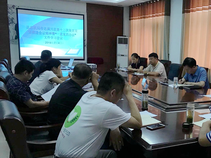 潢川县农机局召开贯彻脱贫攻坚第十二次推进会精神暨“一意见、四办法” 文件学习会议