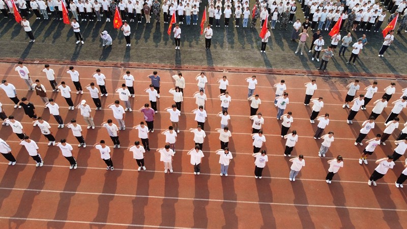 最后,班主任与教官进行了班旗交接仪式。各班挥舞班旗,全体师生齐诵潢川一中的校训,“志远、品端、业精、体健”响彻整个校园,牢记在每位师生心中。潢川一中2023级高一新生军训汇演暨总结大会大会圆满结束。