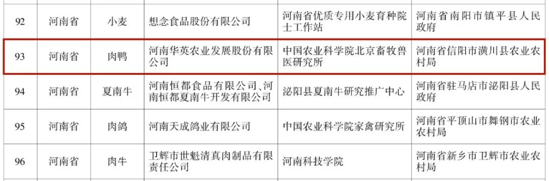 8月22日,农业农村部办公厅公布了第一批农业高质量发展标准化示范基地(国家现代农业全产业链标准化示范基地)创建单位名单,经县市审核、省级推荐和农业农村部组织专家对创建方案进行论证,确定第一批178个示范基地创建单位予以公布,河南华英农业发展股份有限公司作为唯一一家肉鸭行业企业荣耀上榜。附件: