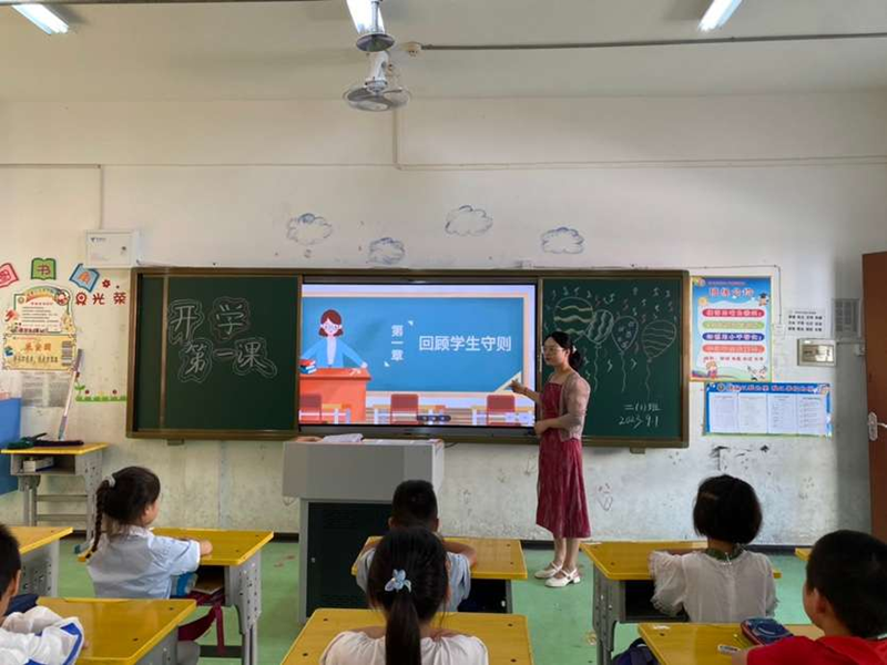 班会课上,各班班主任利用课件,从回顾学生守则—日常行为规范—校内外安全教育等五个方面对学生进行养成教育。重点对校规校纪、校园安全、学礼行卫歌、上学放学路上的人身安全等进行了系统教育,帮助学生提升安全意识、树立安全观念。同时,班主任还带领学生复习了《中小学生守则》和《小学生日常行为规范》,从上课、课间、放学等各个方面对学生进行了规范教育,让每一位同学以崭新的面貌拥抱新学期。