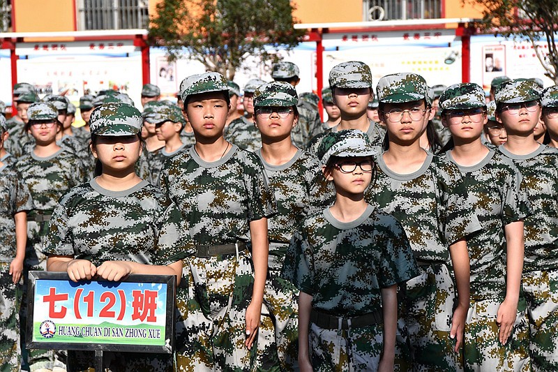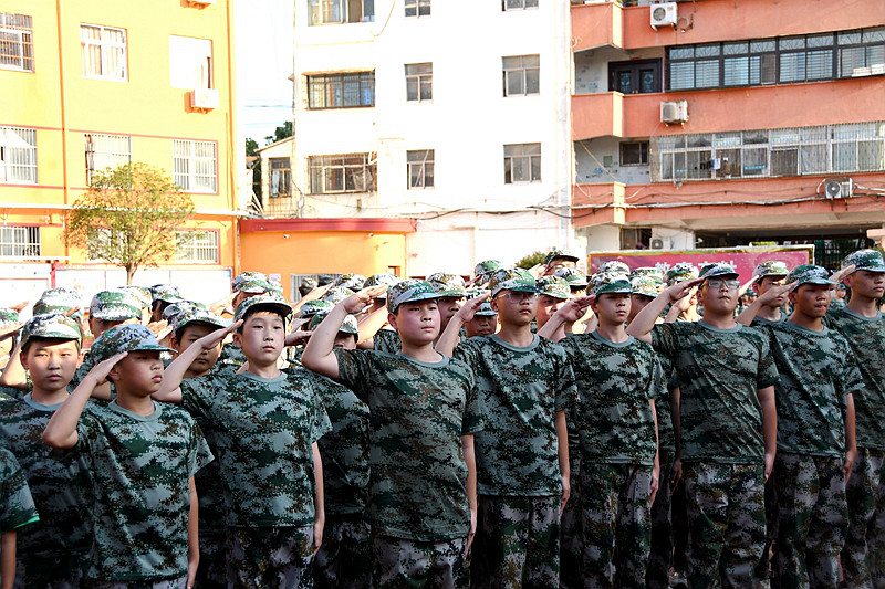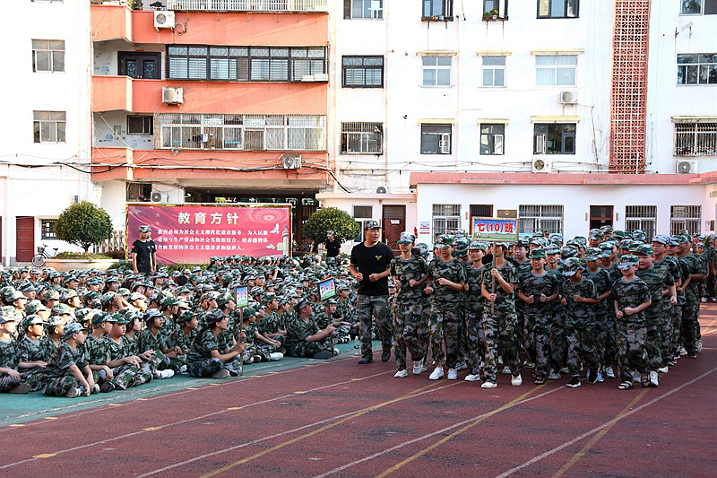 千锤百炼,奋勇争先。为期五天的军训生活,同学们接受了从站军姿到队列动作等一系列的严格训练,各班级方队带着坚定的眼神,迈着铿锵有力的步伐由远方走向检阅台,接受学校领导和老师们的检阅。他们个个精神饱满,激情昂扬。矫健挺拔的身姿、整齐划一的队列,激昂嘹亮的口号,时而下蹲、转身;时而踢腿、跳跃;时而昂首、扩胸;同学们娴熟规范的动作,张弛有度,诠释着刚健之美,洋溢着青春气息,充分展现了当代青少年的青春与活力,彰显了班级凝聚力与向心力。