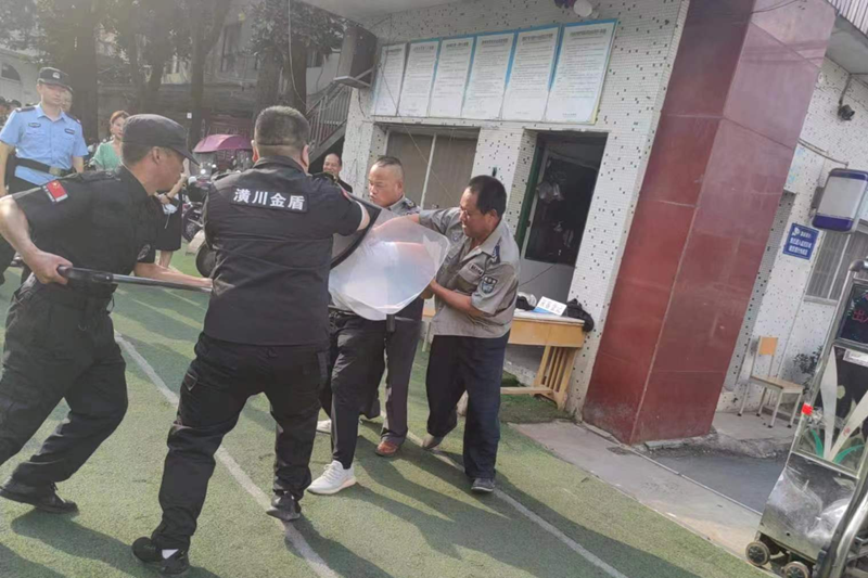 演练前,副校长彭启对防暴器械的使用方法进行了讲解演示;支部委员柳加红对演练的程序和细节作了详细的安排。