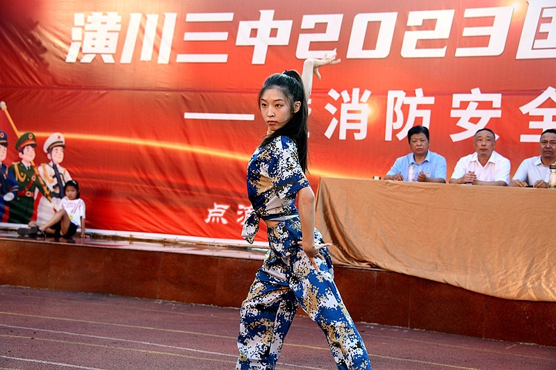 汇演开始前,同学们以班级为单位,身着统一军训服,英姿飒爽,争唱红歌,此起彼伏的歌声震耳欲聋。一首首军歌不仅展现了三中学子朝气蓬勃、昂扬向上的精神风貌,也表达了对峥嵘岁月的追忆,对党和国家的热爱。随后,李晗书记宣布国防教育成果汇报演出正式开始。