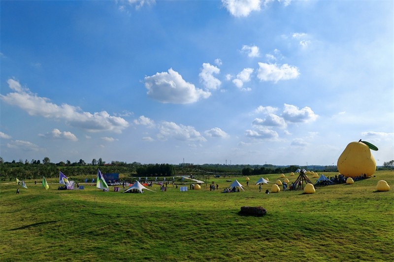 营地现场,24颗大黄梨鲜艳明媚、朝气蓬勃。餐饮区,潢川特色美食烧烤小吃、柠檬茶、华英熟食、鸡头米等特产美食尽情品尝,让味蕾来一次尽情的放纵。舞台表演区,草地音乐派对表演嗨翻全场,让人一边享受美食,一边置身在美妙的音乐之中。帐篷休闲区,颜值和味道都在线的露营地,幕天席地看夕阳,别有一番风光。现场“我在潢川很想你”,“青创看我,最美潢川”,“青春永不落幕”等各色艺术装置吸引游客纷纷打卡拍照,记录美好青春。