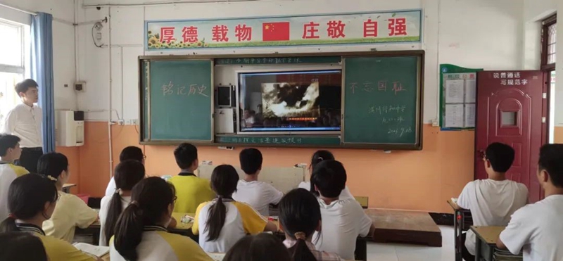 各班组织学生通过教室一体机观看《难忘九一八事变纪录片》,通过视频方式让同学们了解九一八事件,了解革命先烈为国奋勇抗争的英雄故事,感受中华民族不屈不挠的抗争精神,激发同学们热爱祖国,热爱人民的热情。
