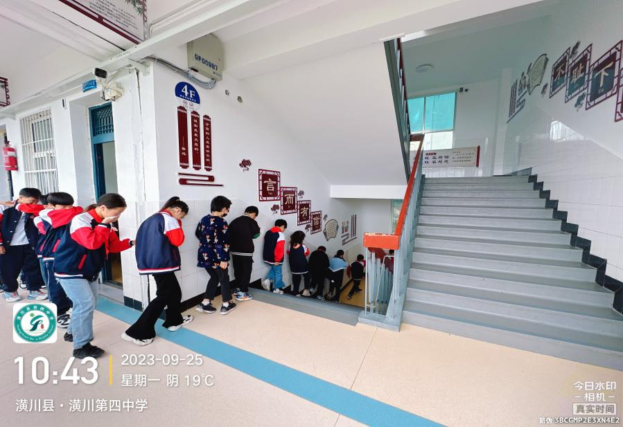 在急促的警报声中,各楼层、楼道负责的老师以最快的速度到达各自岗位。学生们一听到警报声,立即双手捂住口鼻、起立、按本班的疏散路线图有序撤离到操场。在疏散过程中,同学们虽小但是动作规范,他们双手捂住口鼻,低头弯腰靠右侧快速跑步下楼,撤离有序,行动迅速,没有奔跑的冲撞,没有推拉喧哗,也没有拥挤踩踏。整个疏散过程组织有序,各班到达集合地点后迅速整队,向总指挥汇报人数。