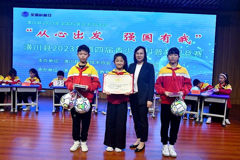 本网讯(杨椿 蒋仲君)为全面推动素质教育,进一步落实双减政策,全面提升广大小学生的科学素质,激发青少年的科学梦想和追求,培养同学们创新精神与实践能力,在校园掀起学科学、爱科学、用科学的风潮,9月25日下午,由潢川县科学技术协会和教体局主办,县实验小学教育集团承办的2023年全国科普日系列活动——“从心出发 强国有我”为主题的潢川县第四届青少年科普知识竞赛活动在县实验小学隆重举行。
