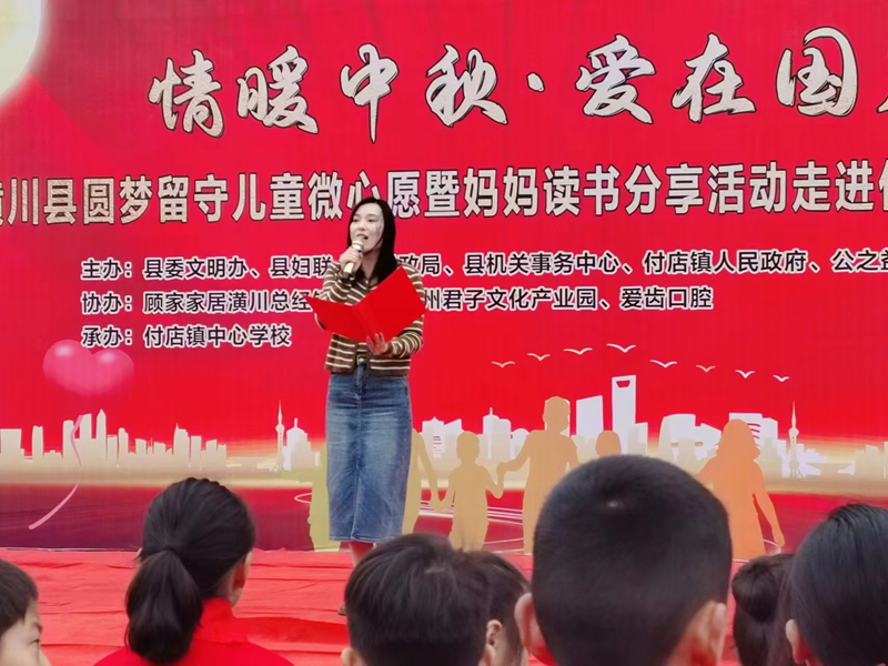 本网讯 月到中秋分外圆,情到深处暖人心。为深入贯彻落实党的二十大精神和习近平总书记关于注重家庭家教家风建设及儿童工作的重要论述,在全社会形成关心关爱留守儿童的浓厚氛围,9月26日,县妇联联合县委文明办、县民政局、县机关事务中心、付店镇人民政府、公之益志愿服务协会、顾家家居潢川总经销、爱齿口腔、乡豫光州君子文化产业园等爱心单位爱心企业走进付店镇中心小学开展“情暖中秋,爱在国庆”关爱留守儿童活动,为64名留守儿童送上关爱物资和节日祝福,让留守儿童感受到党和政府的关爱和温暖。县妇联党组书记胡煜昊、县机关事务中心主任李强、付店镇镇长杨宇、县妇联党组成员、副主席杨玲玲及公之益志愿协会志愿者等参加此次活动。