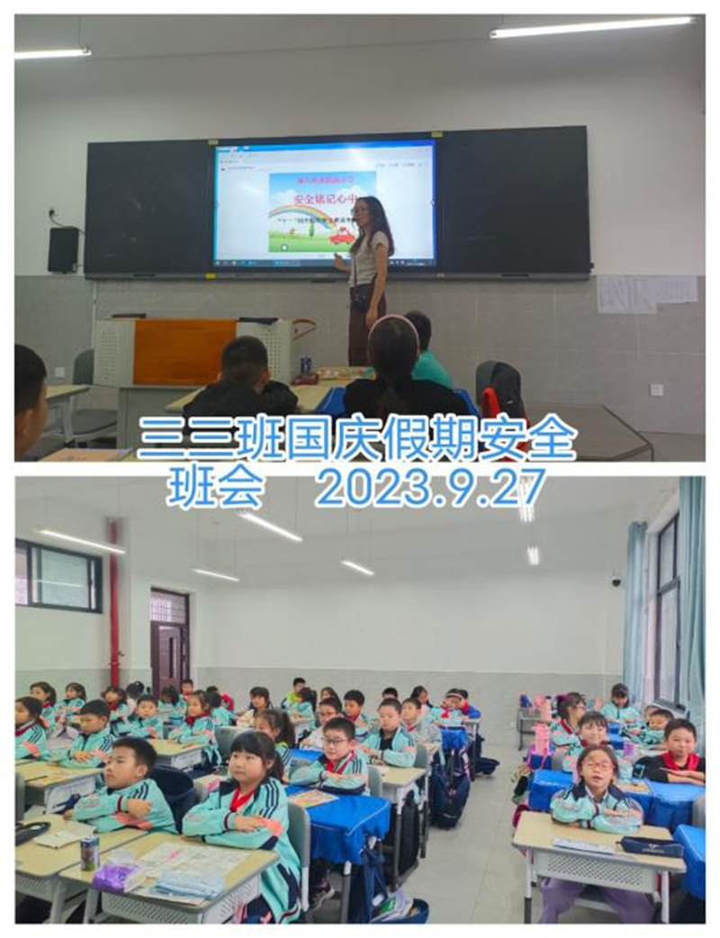 本网讯(黄雷)国庆假期临近,又恰逢中秋佳节,为提高师生们的安全意识,使全体师生的假期过得舒适、安全而又有意义,2023年9月27日,潢川县黄国路小学各班开展主题为“安全铭记心中”的国庆节假期安全教育班会。
