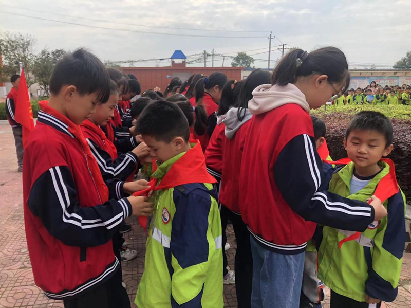 本网讯 为纪念少先队建队74周年,教育引导广大少先队员听党的话、跟党走,用实际行动把红色基因一代代传下去增强少先队光荣感。10月9日,潢川县付店中心小学举行“学习二十大 永远跟党走 争做好队员”为主题的集中入队仪式,本次升旗仪式由少先队大队辅导员彭菊、梁灿主持。