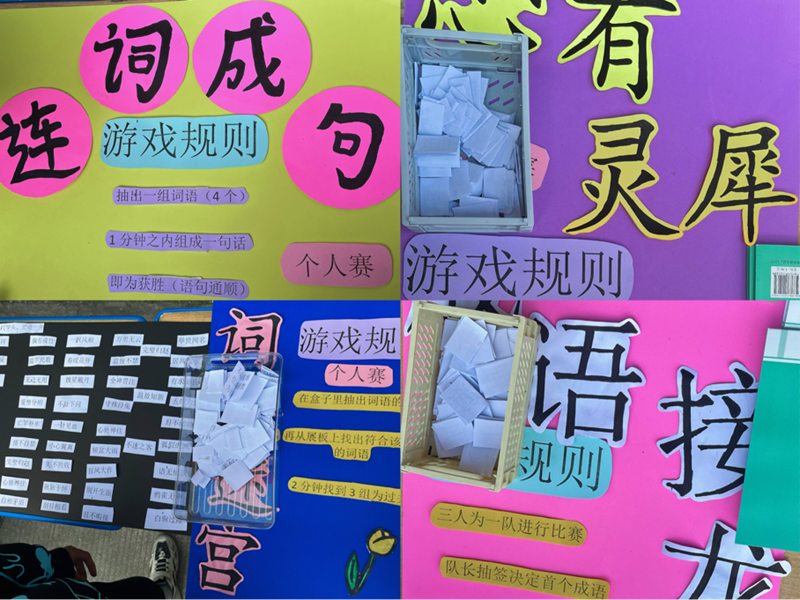 本次活动的主题是语文趣味游园活动,共有连词成句、心有灵犀、词语迷宫、词语接龙四个项目。各年级学生共分成四个小队,展开一场关于勇气、趣味、胆识的较量。活动中,大家协同合作、展示风采、相互鼓励,加油声、口号声、欢笑声此起彼伏。大家纷纷以满腔的热情、高昂的斗志投入到比赛中,比赛过程精彩纷呈,现场气氛十分热烈,体现了同学们的集体意识,让同学们体会到了文字的魅力和文化传承的意义,让同学们学习语文,爱上语文。