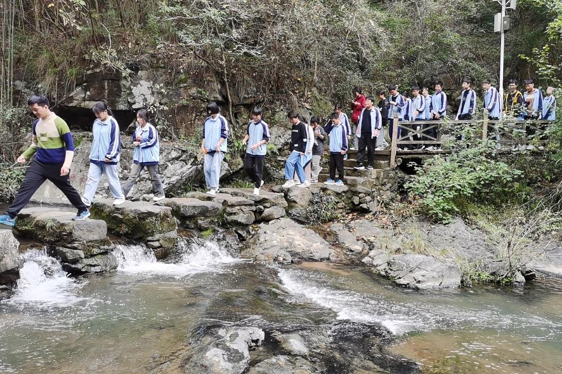 行进旅途上,一路的兴高采烈,一路的欢歌笑语。抵达目的地,进入景区大门,师生们沿着蜿蜒的山路拾阶而上,井然有序地攀爬山峰,只见层峦叠翠、古树参天,大家迅速融入了大自然的怀抱,尽享大自然的风光。