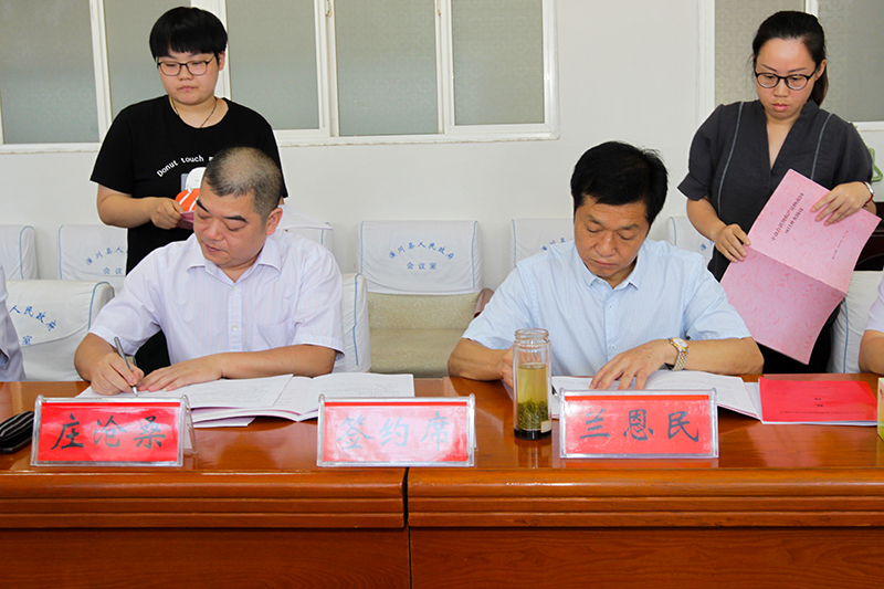 仪式上,潢川县人民政府县长兰恩民和中众合有限公司董事长庄沧桑代表双方签订了合作框架协议。