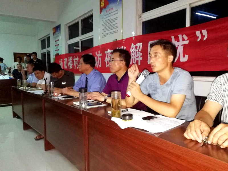 县政府副县长胡冰、县检察院检察长陈晓东一行六人来到杨双楼村,乡长张芝河、杨双楼村脱贫攻坚责任组成员、帮扶单位、相关业务部门骨干等参与“昼访夜谈解民忧”座谈会,与贫困户、非贫困户代表亲切座谈。座谈气氛热烈,群众代表积极发言,就杨双楼村道路、电力设施、沟渠等基础设施问题、困难群众救助、人居环境改善等方面建言献策。针对问题,现场认真记录并一一给予解释和答复。群众代表认为杨双楼村在国家各项扶贫政策的扶持下,村容村貌发生了巨大变化,生产生活大幅度提升,看病上学住房也不再是问题,要珍惜党和国家给予的好政策,通过努力早日摆脱贫困。
