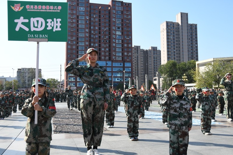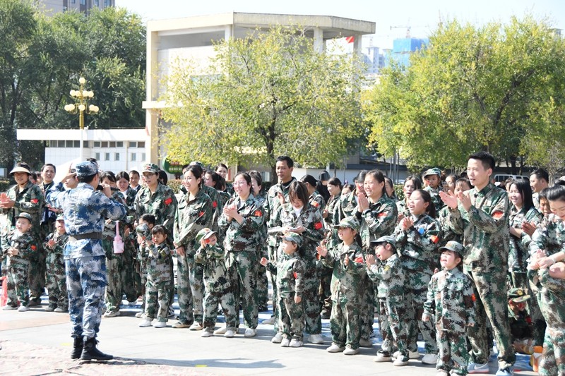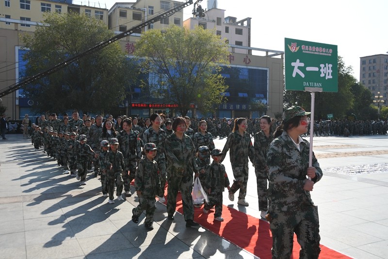 随后,全体幼儿展示了精彩的军事技能表演,孩子们动作整齐划一,稚嫩的脸上流露出严肃认真的神情,赢得了在场观众的阵阵掌声。