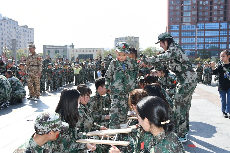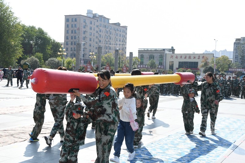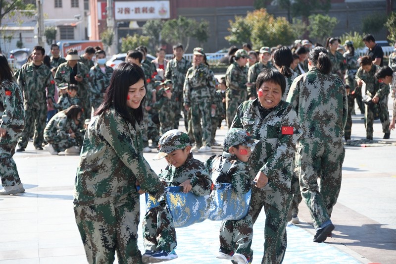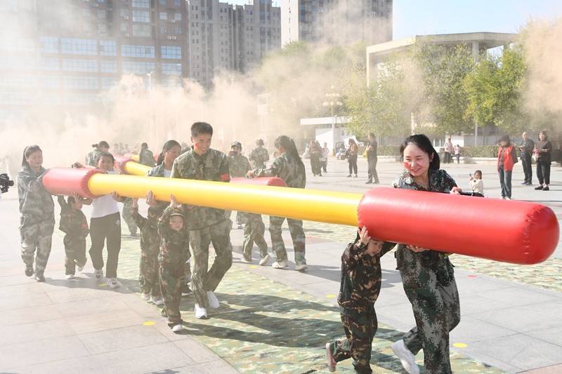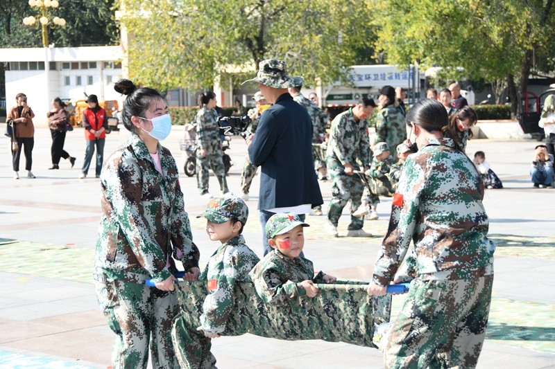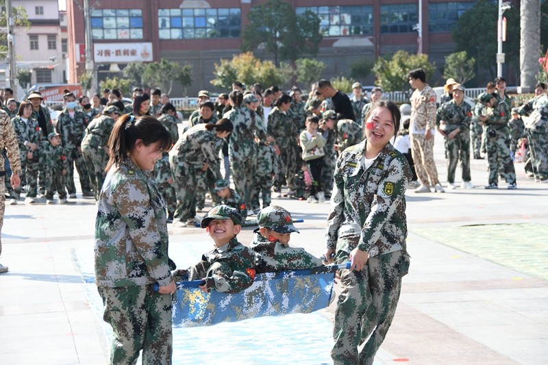趣味游戏环节,幼儿园精心设计了多种富有军事特色的游戏,如“战地救护”、“穿越火线”等,家长与孩子齐心协力、共同前行,让孩子们在运动中体会顽强拼搏、坚持不懈的可贵精神。